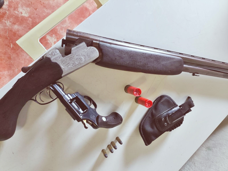 Ao chegarem ao local informado, os policiais mantiveram contato com o suspeito, que autorizou a entrada da guarnição em sua residência e confirmou possuir uma espingarda Beretta calibre 12, nº 28009, e um revólver Taurus calibre .32, nº 2446, além de duas munições calibre 12 CBC e quatro munições calibre .32 CBC.