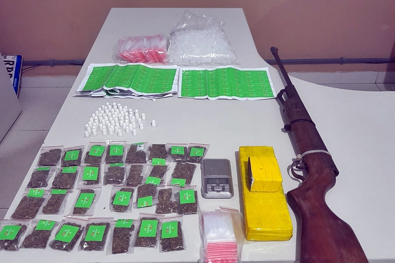 Na tarde desta terça-feira (7), por volta das 18h, uma guarnição da 89ª Companhia Independente da Polícia Militar (CIPM) apreendeu drogas e uma arma artesanal durante patrulhamento de rotina na Rua Rio Amazonas, no bairro Triângulo Leal, distrito de Itabatã, município de Mucuri.