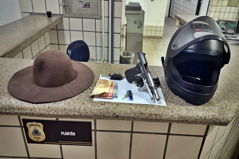 Durante a abordagem, os policiais encontraram na cintura do condutor uma pistola Taurus, calibre 7.65mm. O suspeito, de 26 anos, recebeu voz de prisão e foi conduzido para a Delegacia de Polícia da cidade