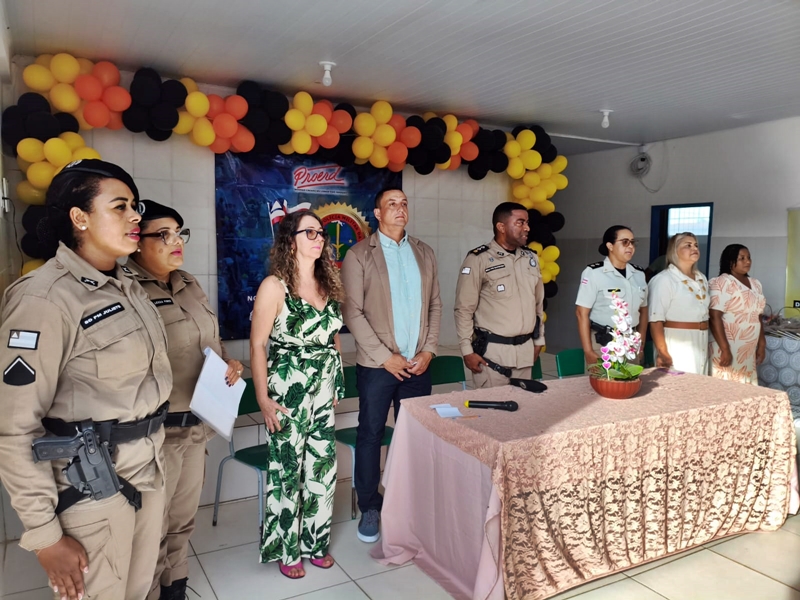 A Polícia Militar realizou, na tarde desta terça-feira (9), a cerimônia de entrega dos certificados de conclusão do Proerd (Programa Educacional de Resistência às Drogas e à Violência) a 86 alunos do 5º ano da Escola Municipal José Félix Correia, no bairro Nova América, em Teixeira de Freitas. O evento reuniu estudantes, familiares, professores e o comandante da 87ª Companhia Independente de Polícia Militar (CIPM), major Barbosa.