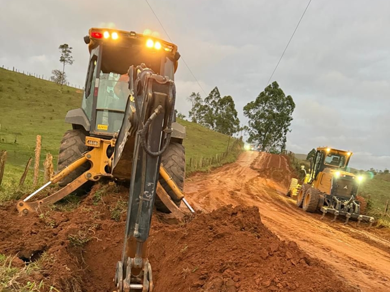 As equipes da Prefeitura estão trabalhando de forma acelerada com patrolamento, encascalhamento e nivelamento das estradas, recuperando trechos danificados pelas intempéries.