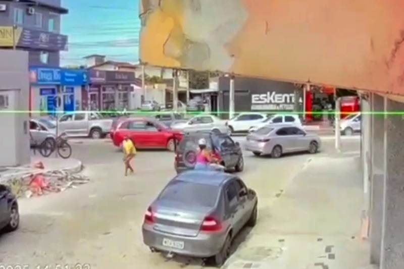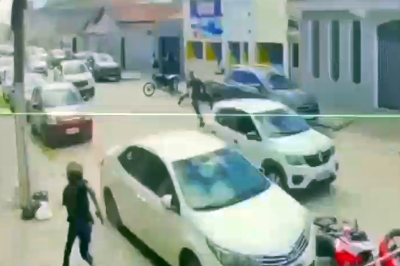 Um vídeo registrado por câmeras de segurança mostra o momento em que Kaio Alexandre Costa de Jesus, de 20 anos, e Carlos Roberto interceptam um veículo e trocam tiros com o motorista, na tarde desta segunda-feira (6 de outubro), em Teixeira de Freitas.